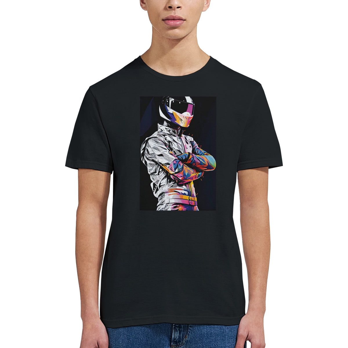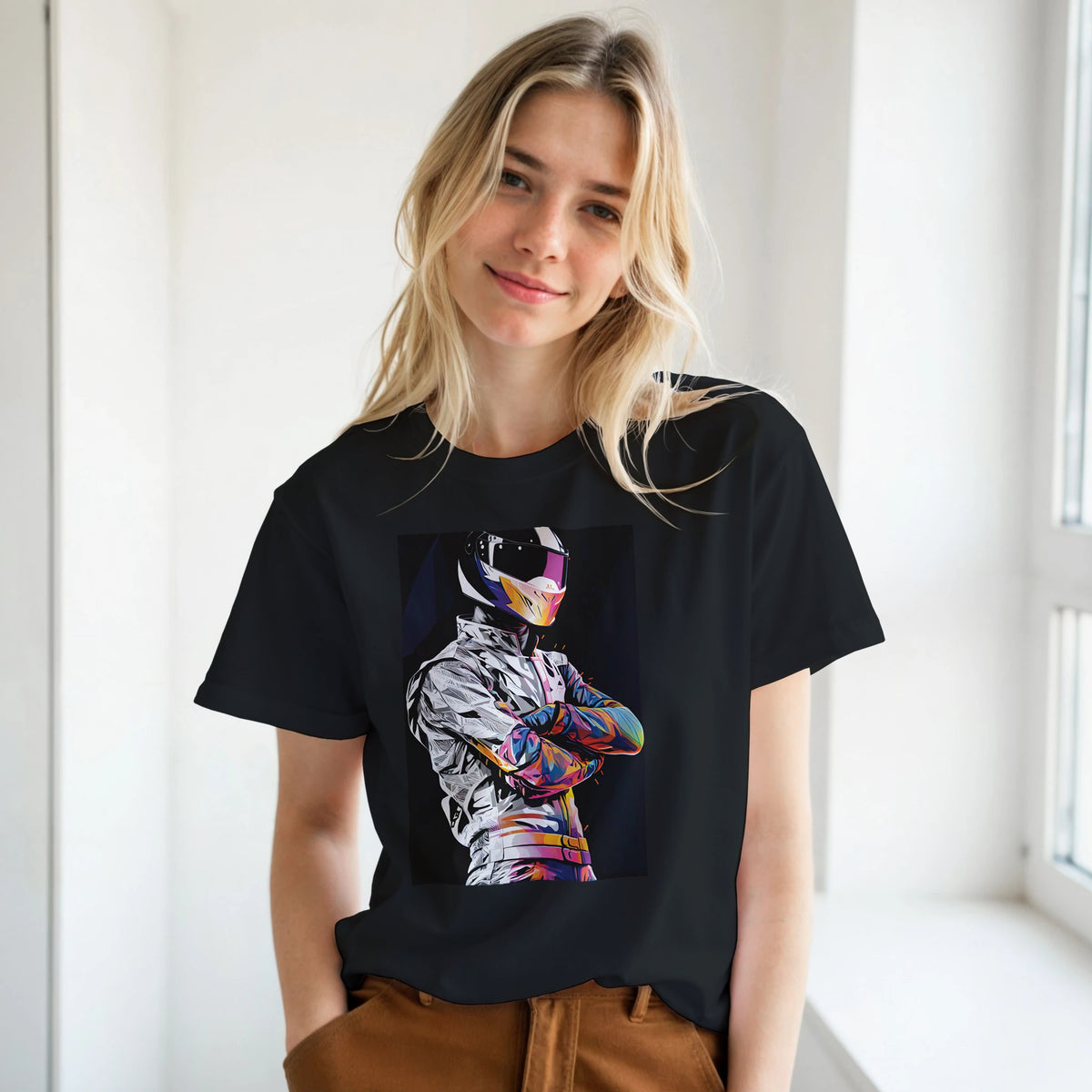 Chrome tunnels stretch into blinding streaks, the racer’s line drawn at the speed of adrenaline — now carried beyond the wall and onto fabric. Every reflection, every split‑second decision is captured in cinematic detail, printed with DTG precision on the ultra‑soft Gildan 6400.
