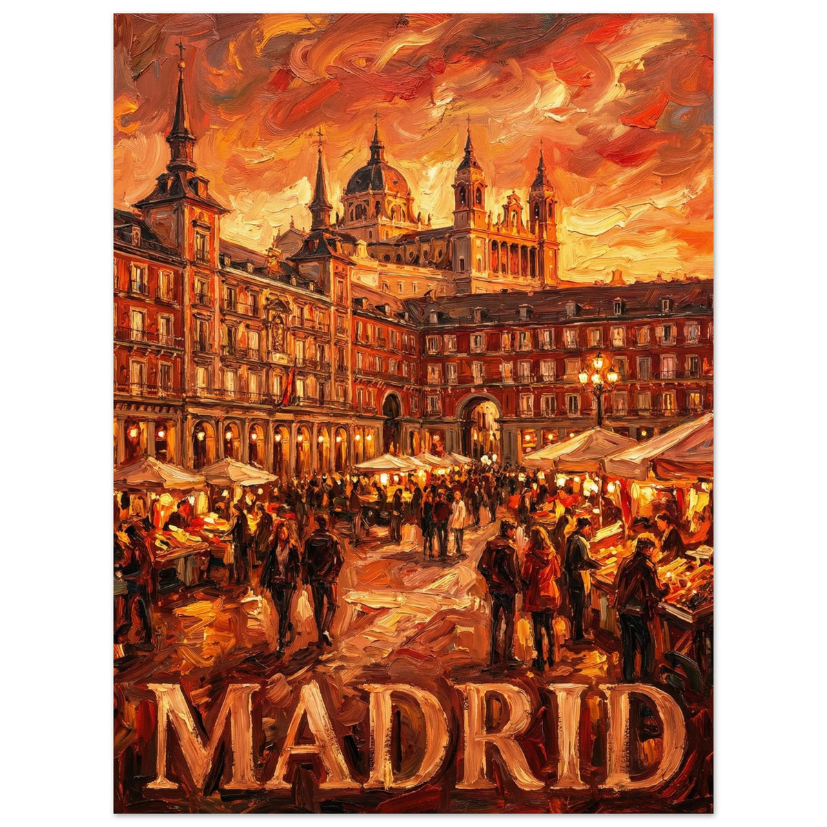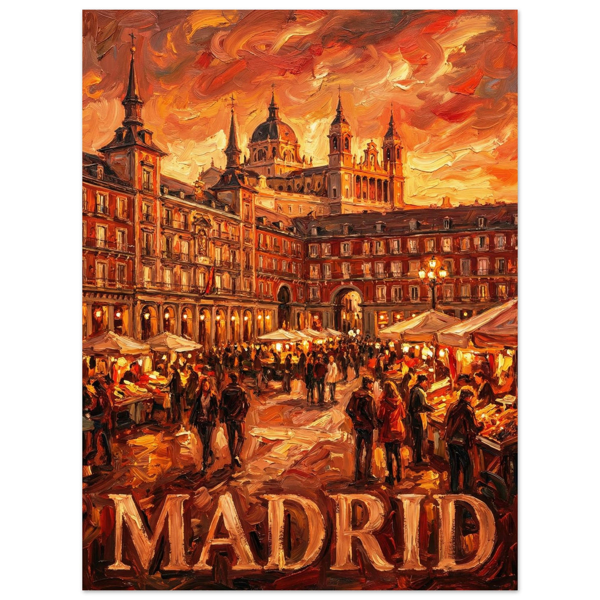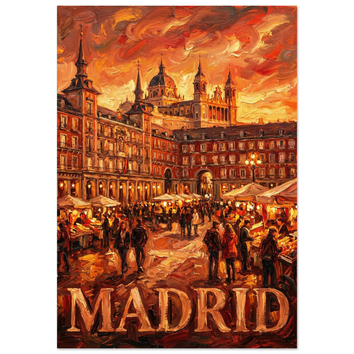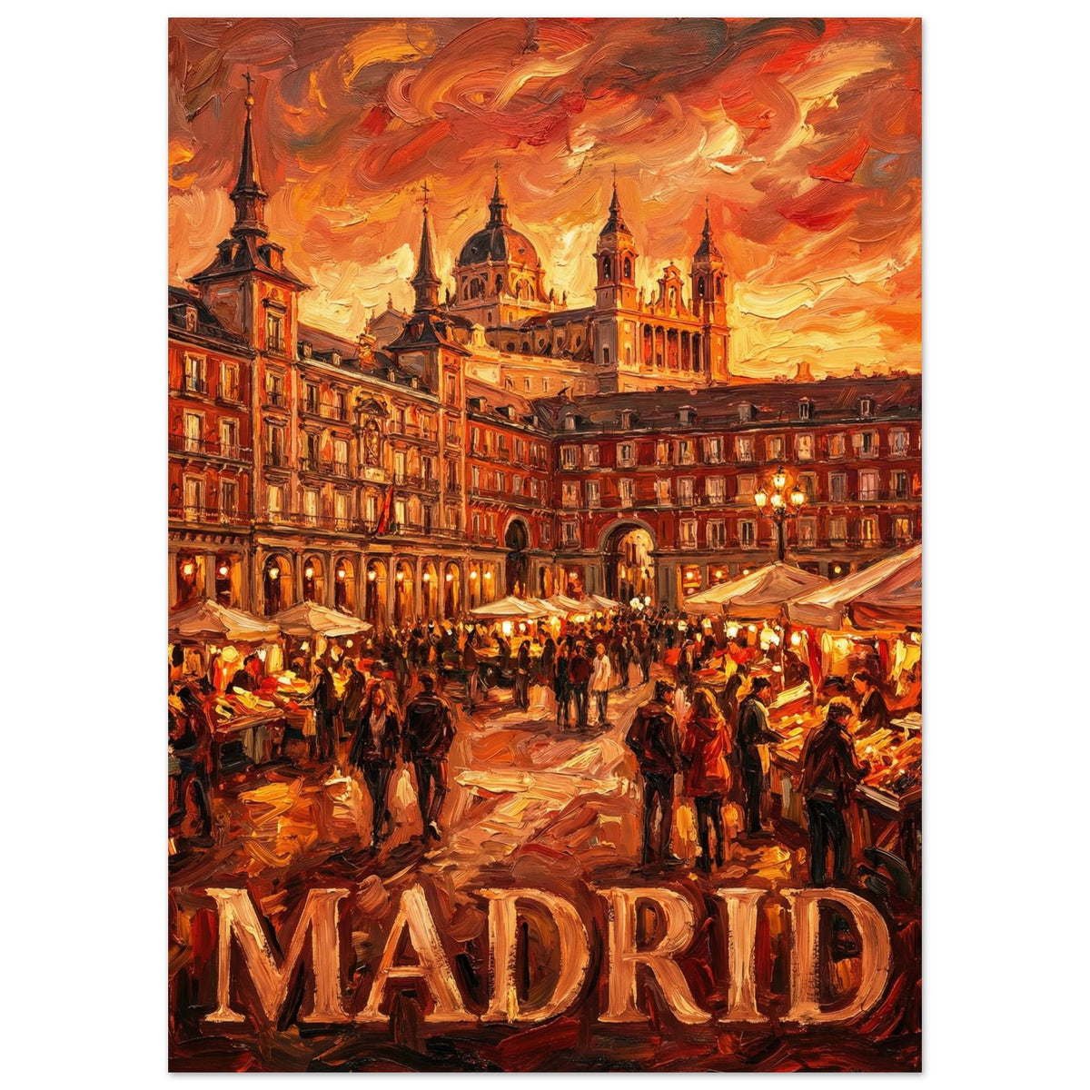 Fiery Plaza captures Madrid at its most expressive — where warmth, crowd, and architecture merge into a shared rhythm that only exists when the city is fully awake.