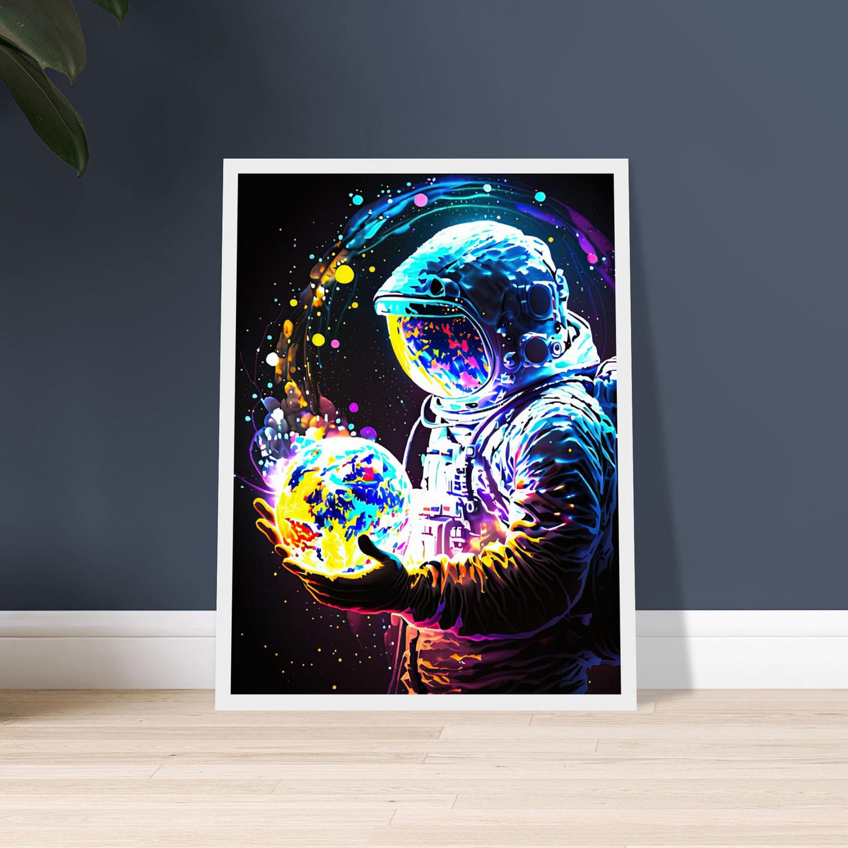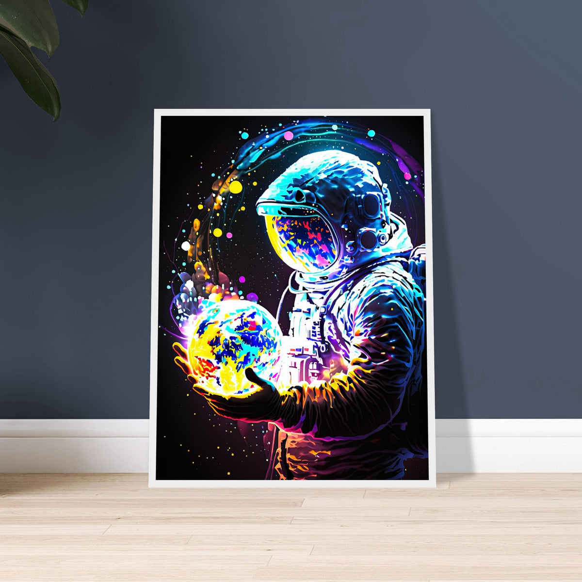 A contemplative, atmospheric statement piece designed to bring color, depth, and cosmic wonder into your space.