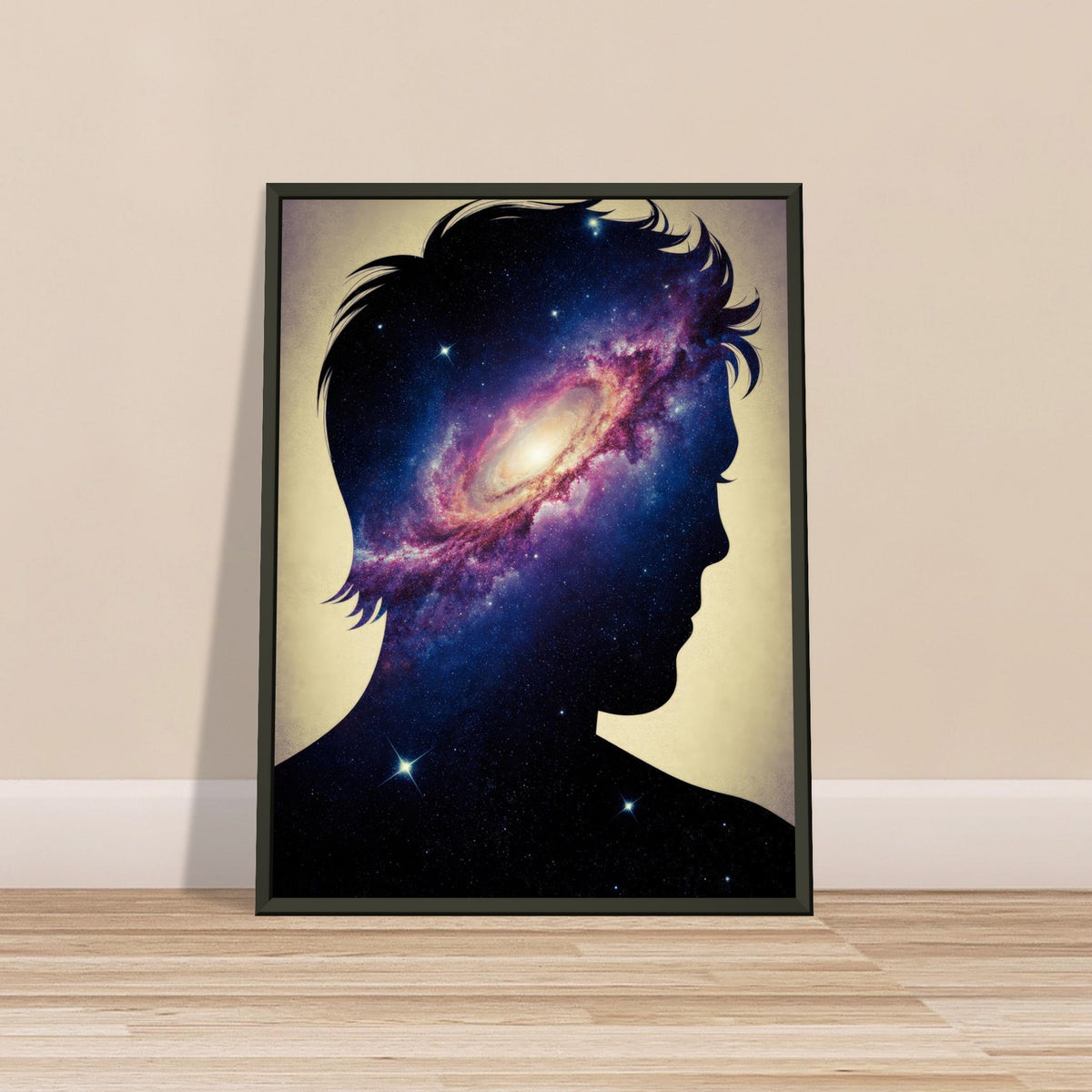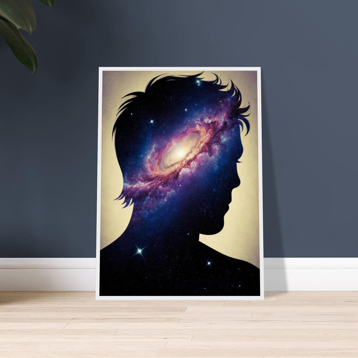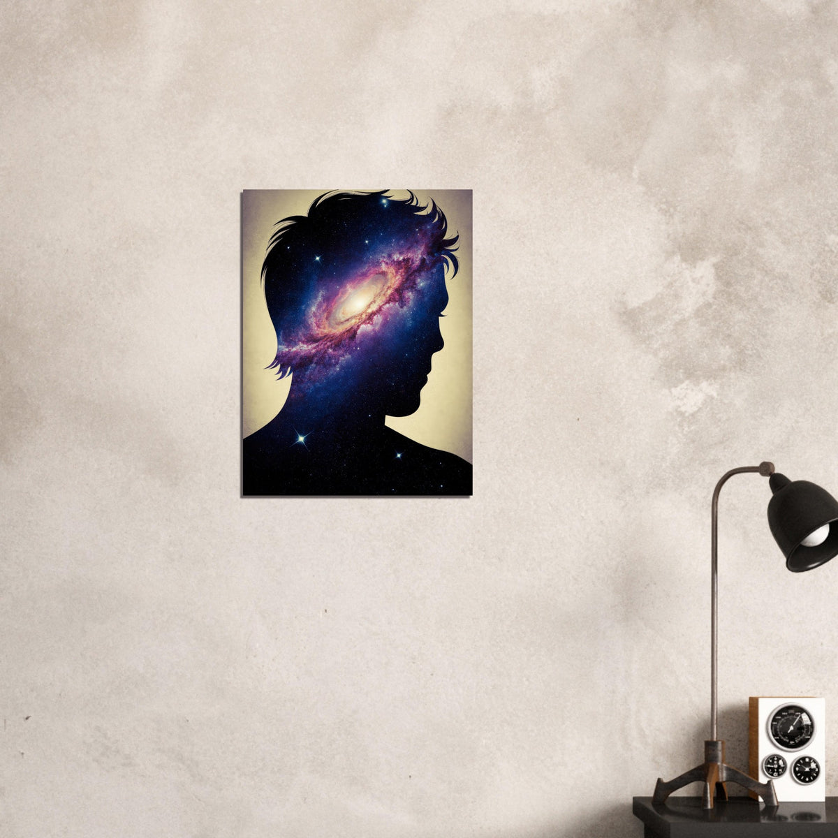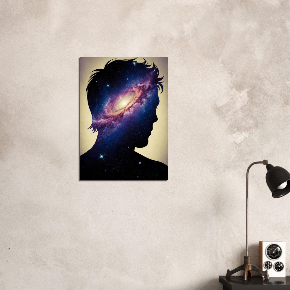 Within the silhouette, a galaxy turns endlessly—stars, dust, and light spiraling around a radiant core aligned with thought itself. The boundary between inner and outer space dissolves, suggesting that consciousness is not separate from the cosmos, but a reflection of it.