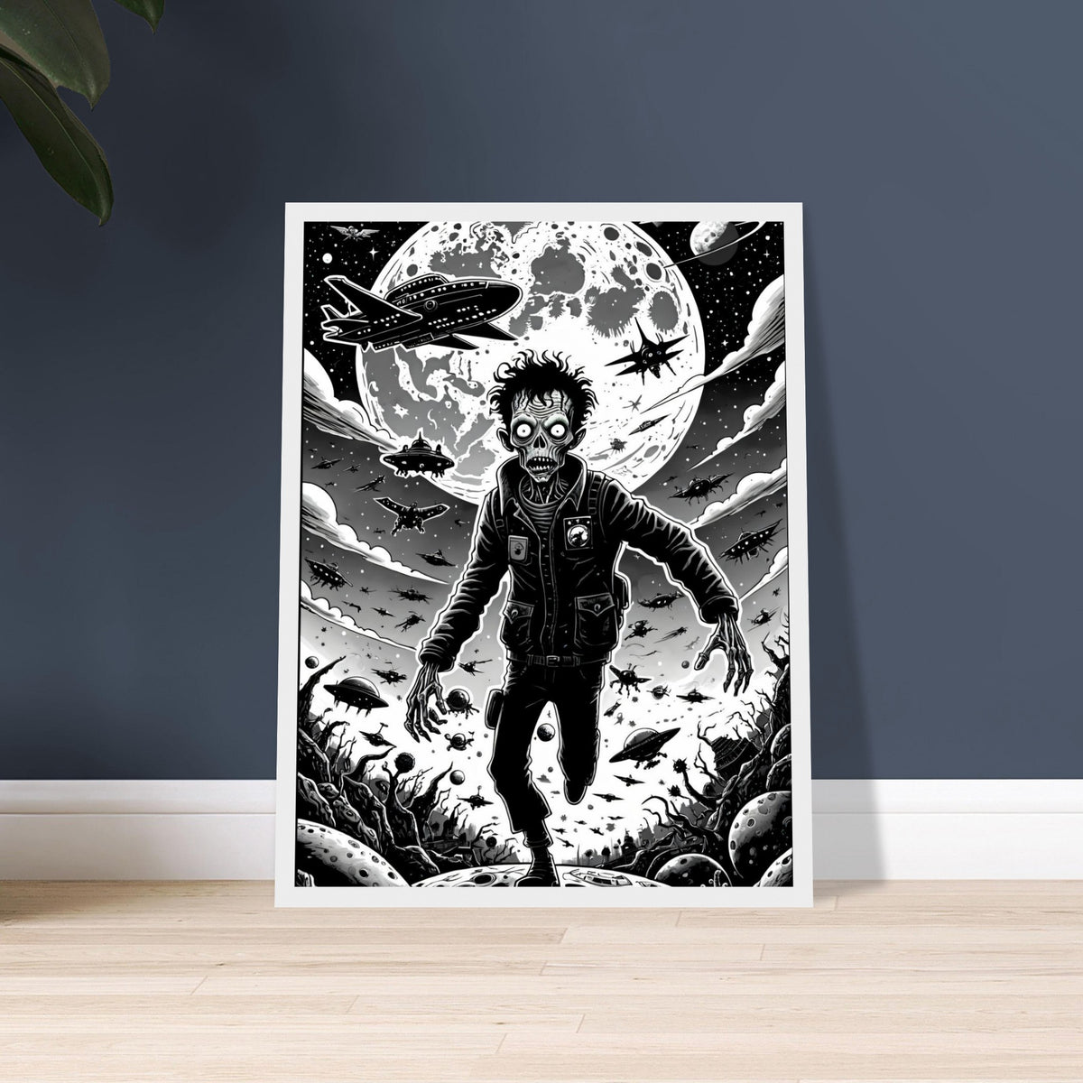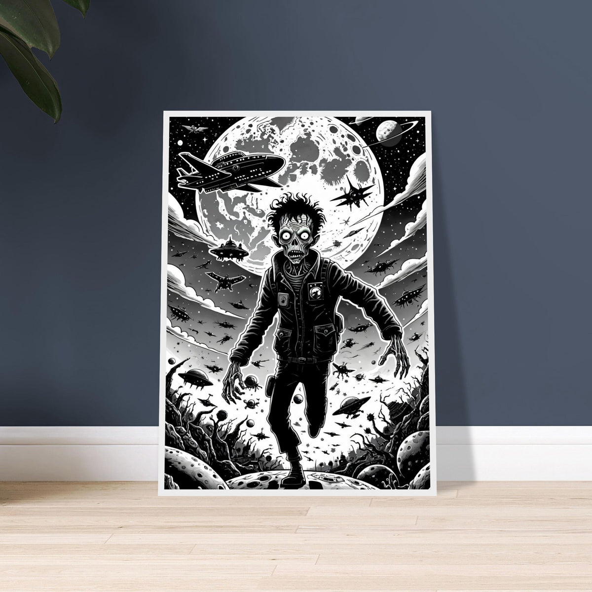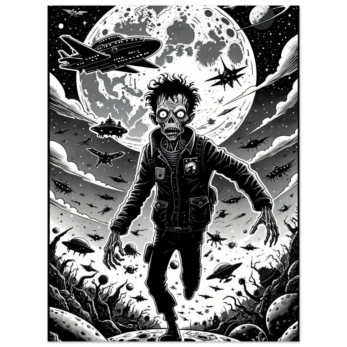 Moonfall Aberration captures a surreal vision of cosmic chaos rendered in stark contrast—where the past and future overlap, and the unknown is no longer distant, but already here.