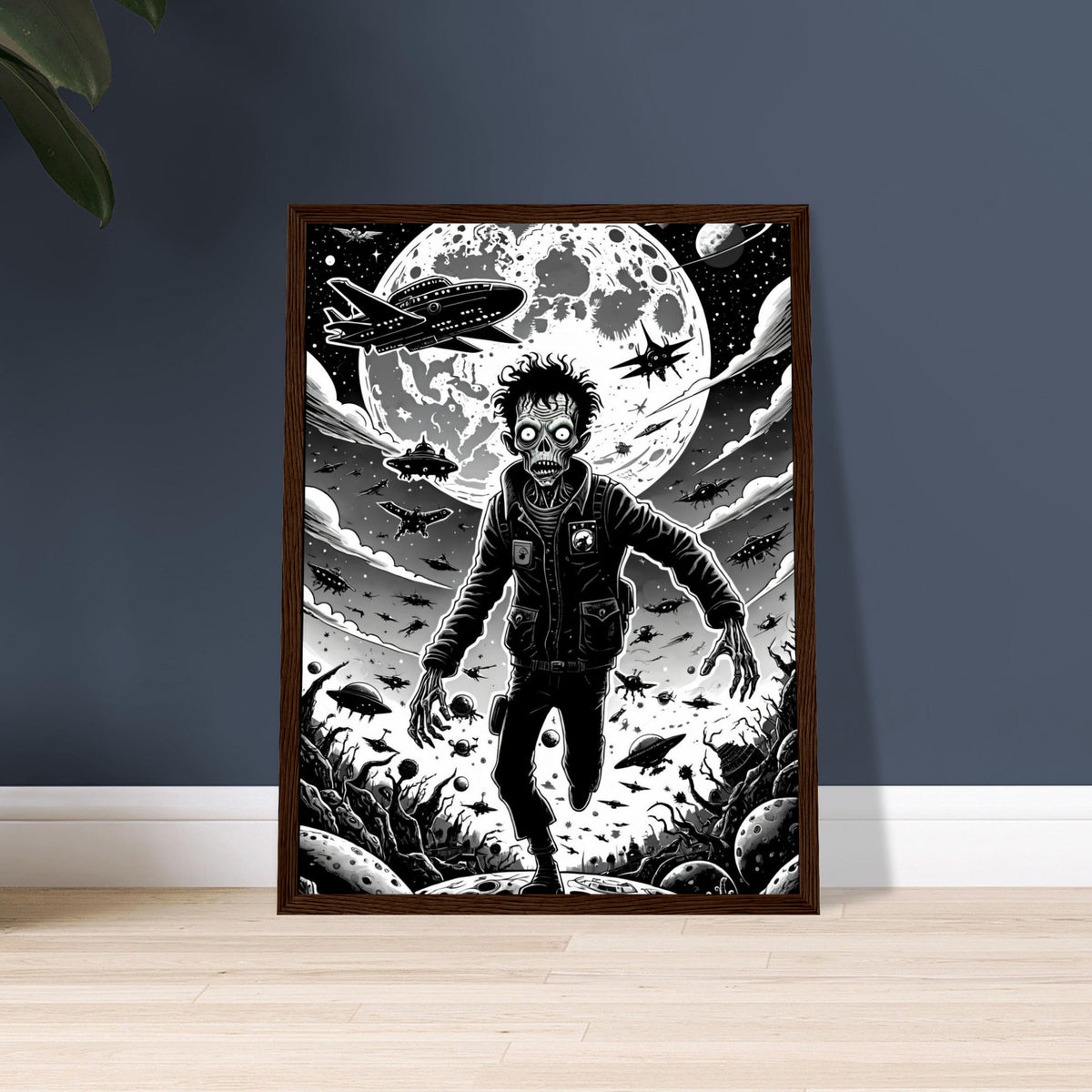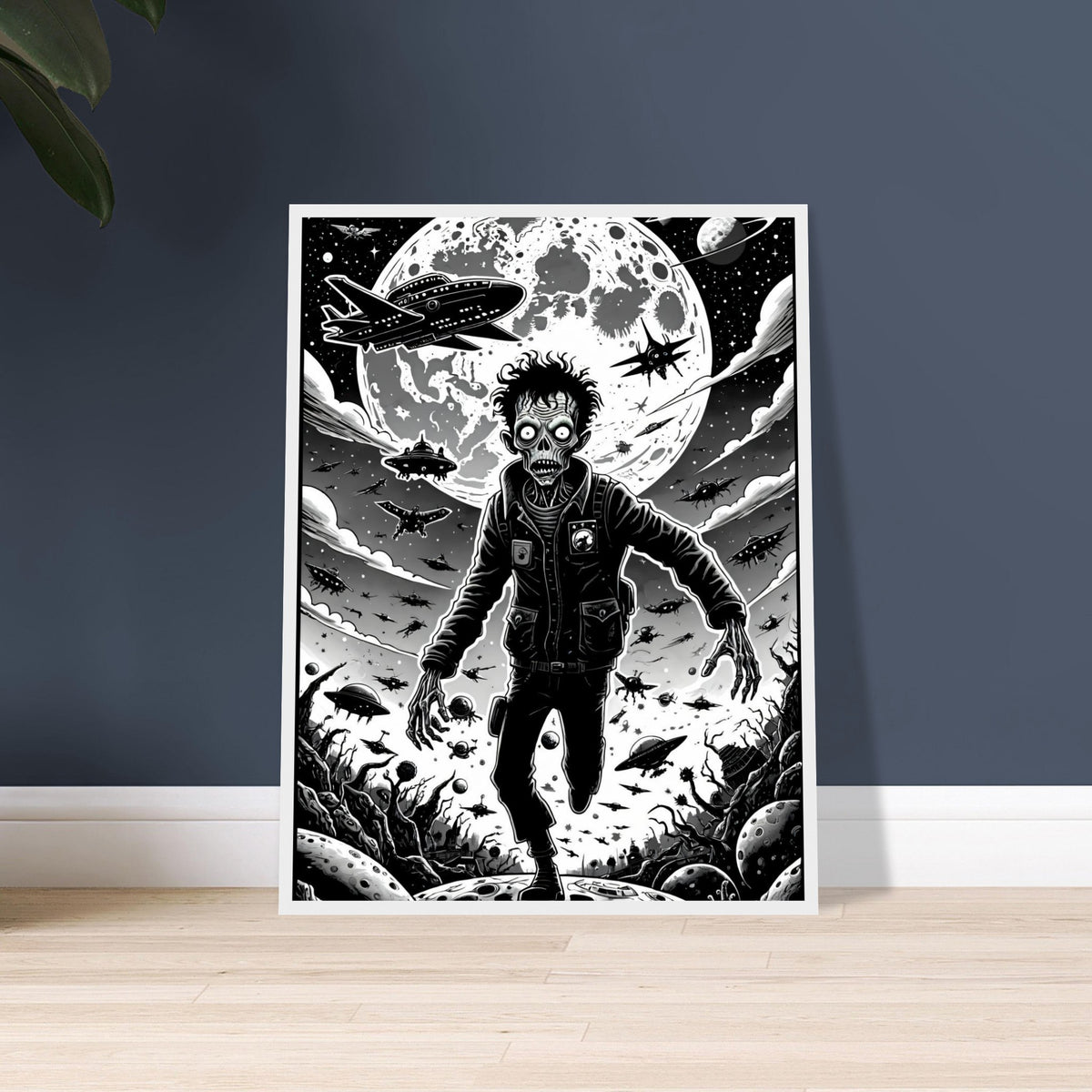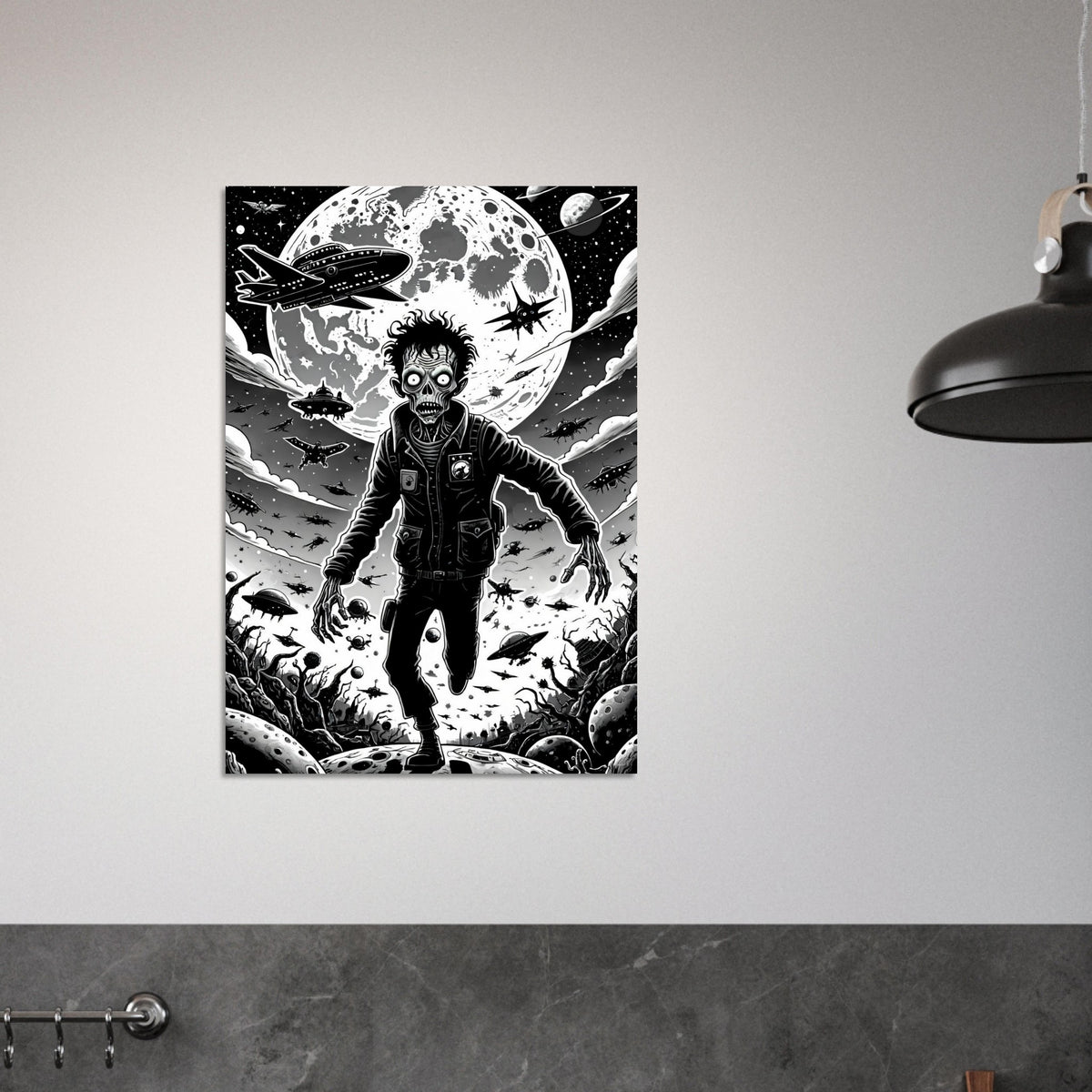 Moonfall Aberration captures a surreal vision of cosmic chaos rendered in stark contrast—where the past and future overlap, and the unknown is no longer distant, but already here.