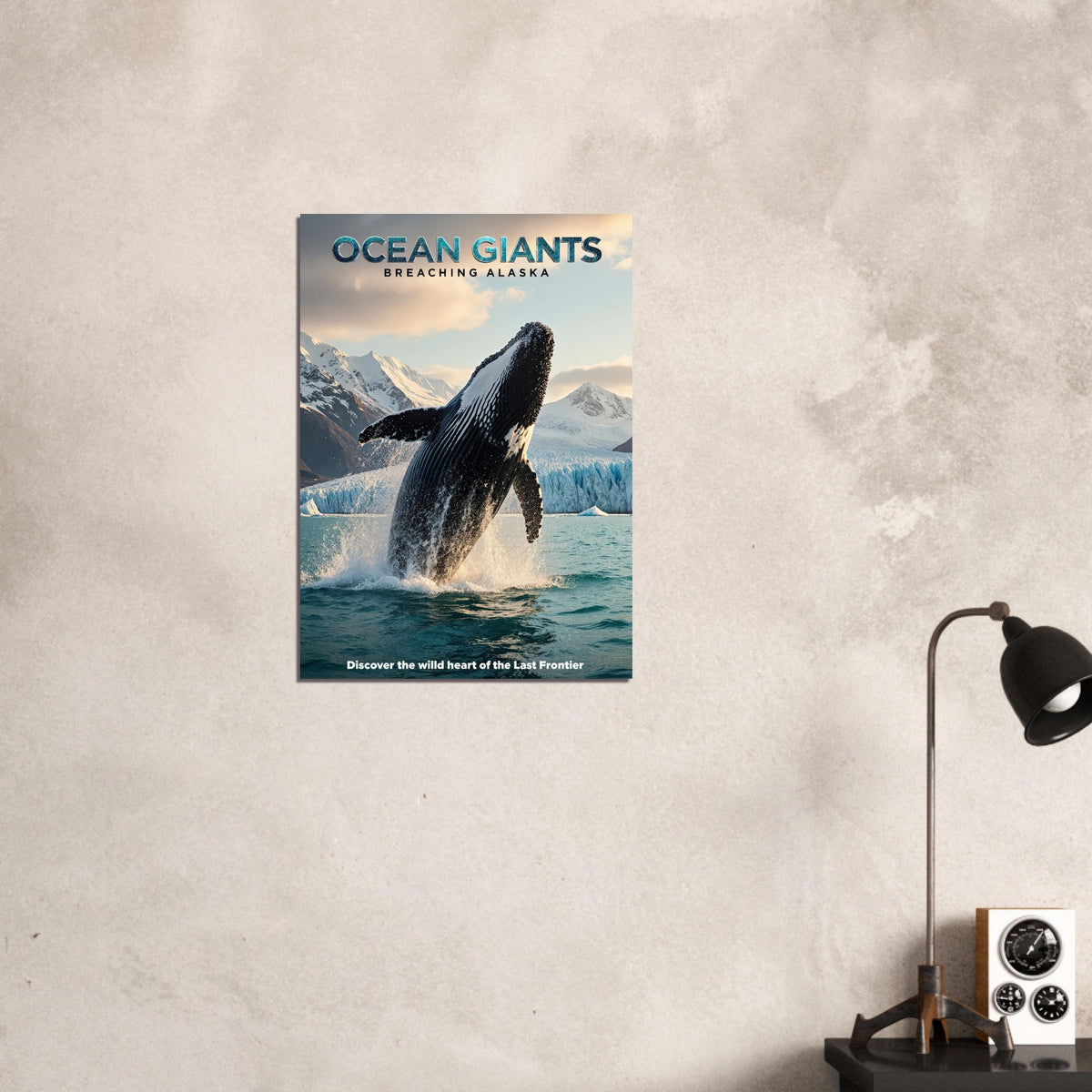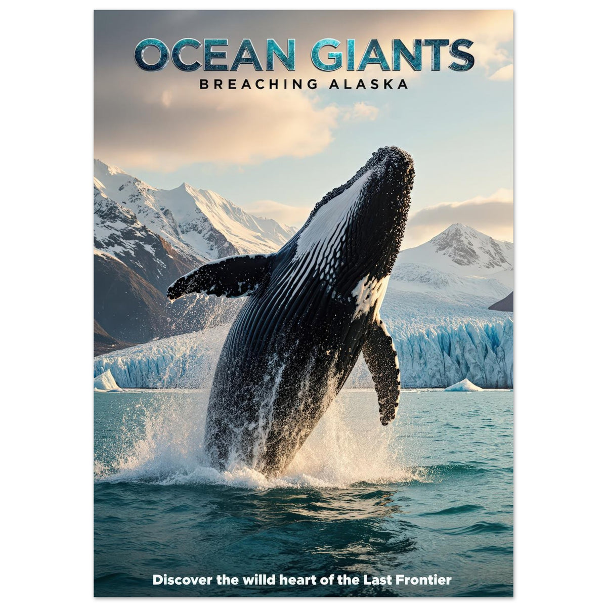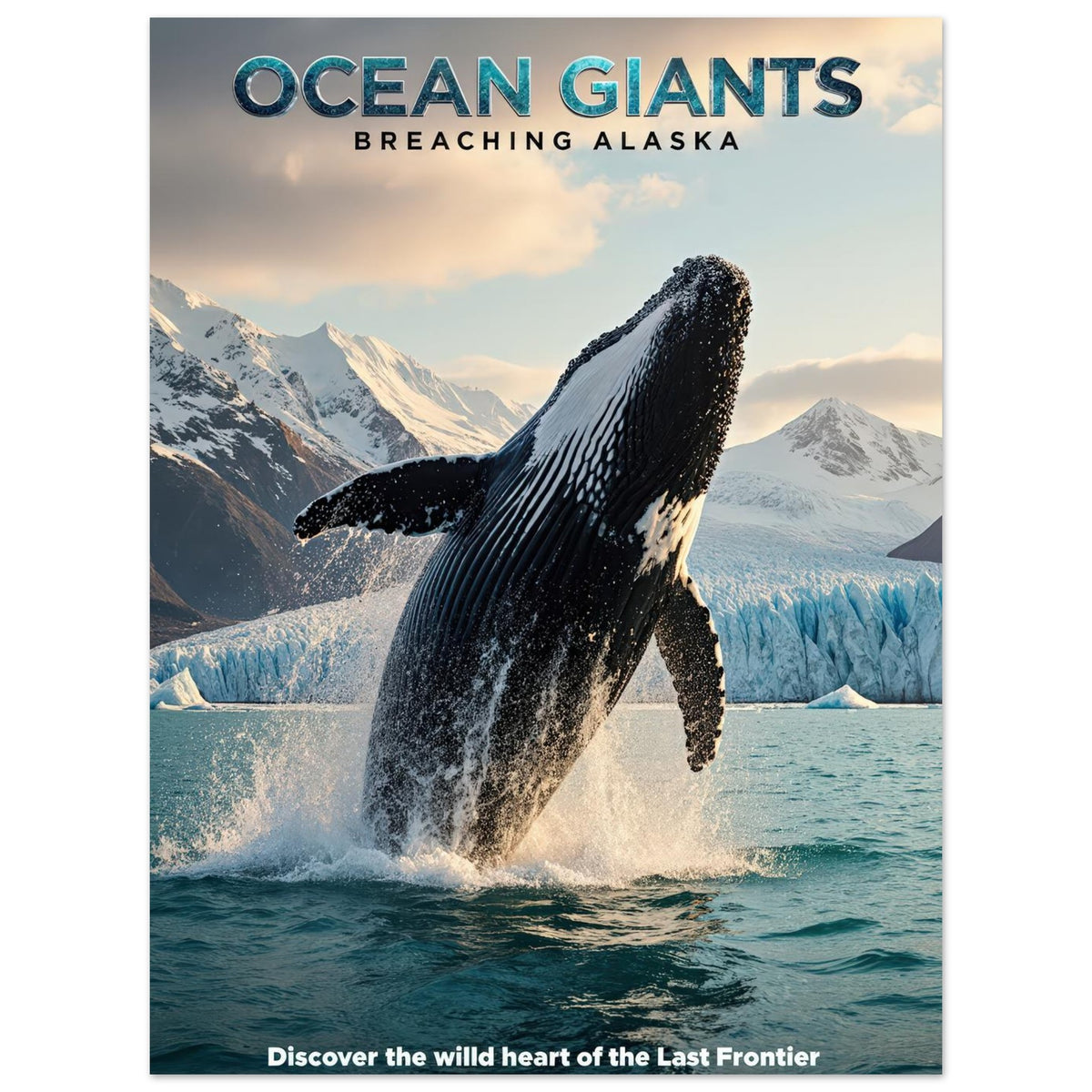In the cold expanse of Alaskan seas, a whale rises from the surface in a surge of motion and spray, its mass briefly defying gravity before returning to the depths. The surrounding water settles quickly, as if accustomed to moments like this.