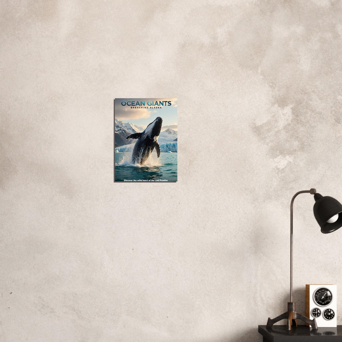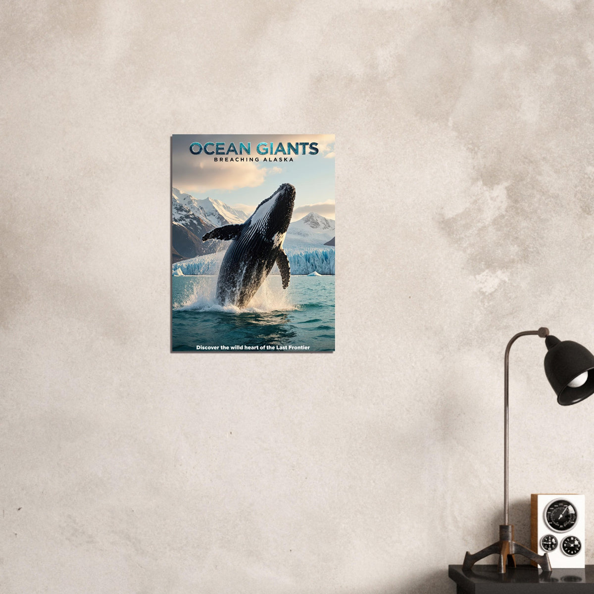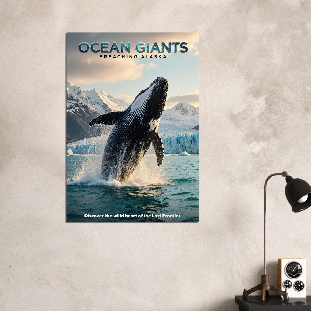In the cold expanse of Alaskan seas, a whale rises from the surface in a surge of motion and spray, its mass briefly defying gravity before returning to the depths. The surrounding water settles quickly, as if accustomed to moments like this.