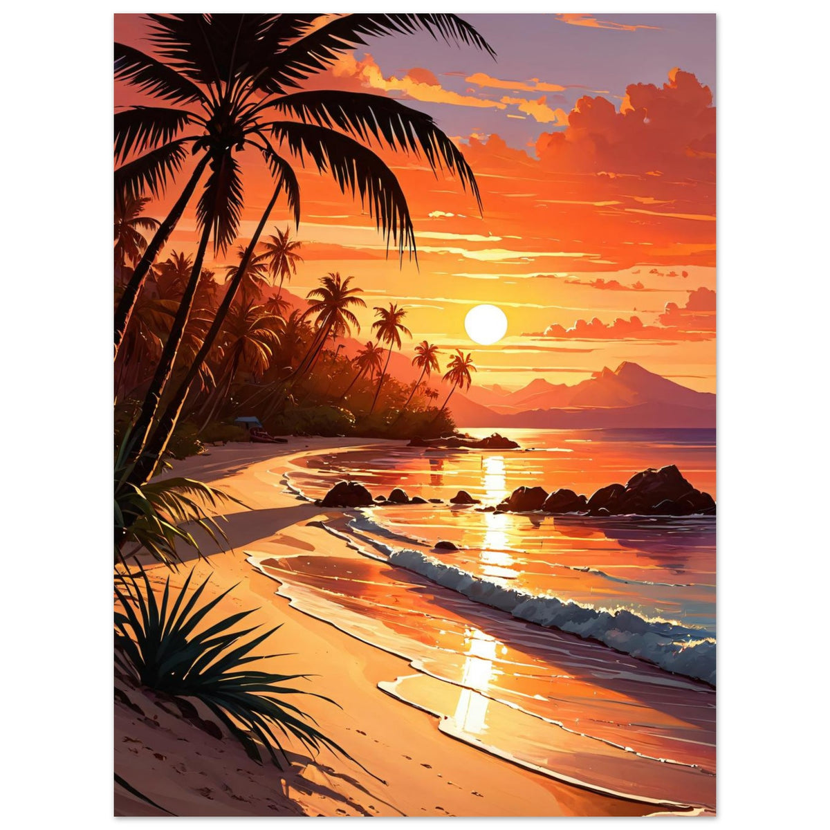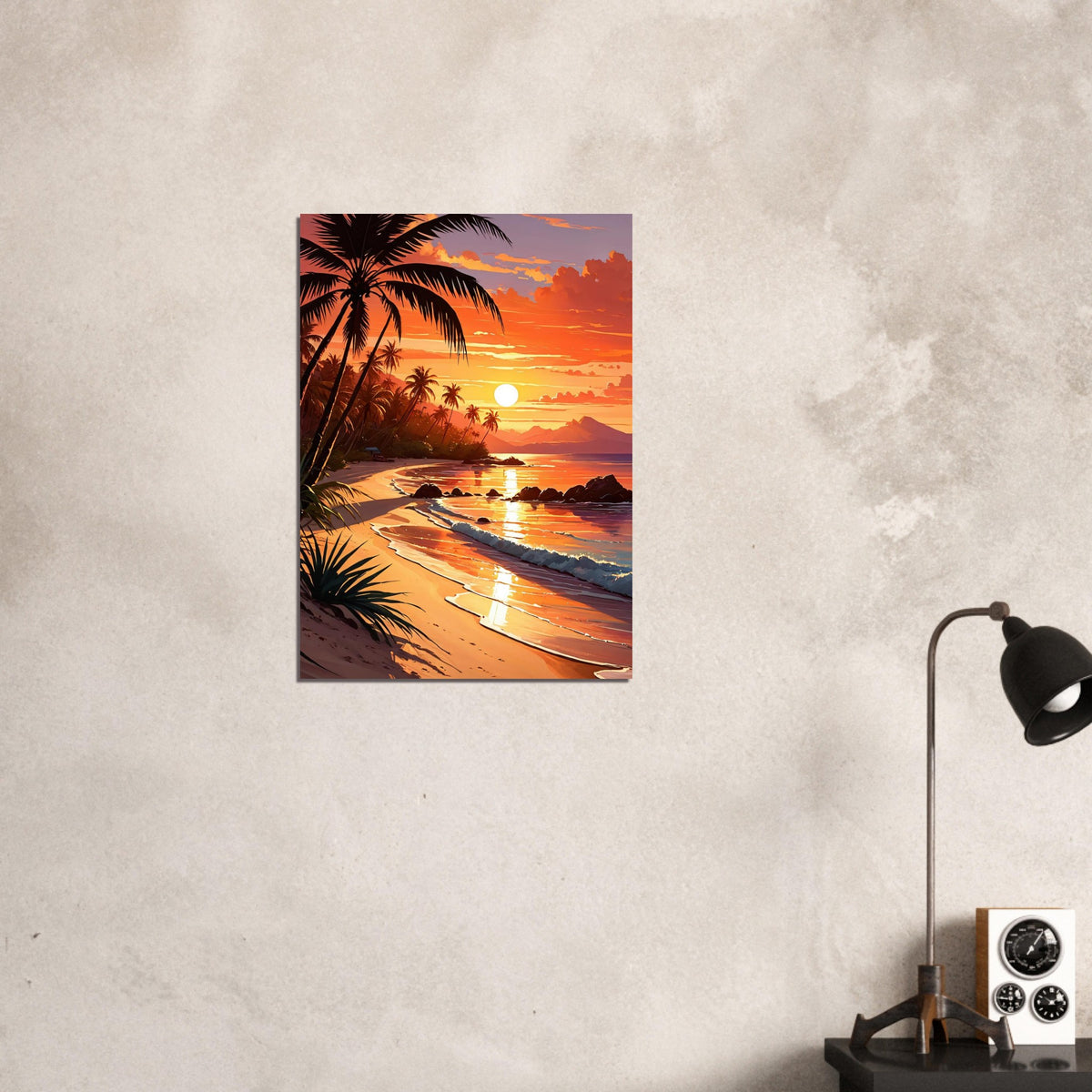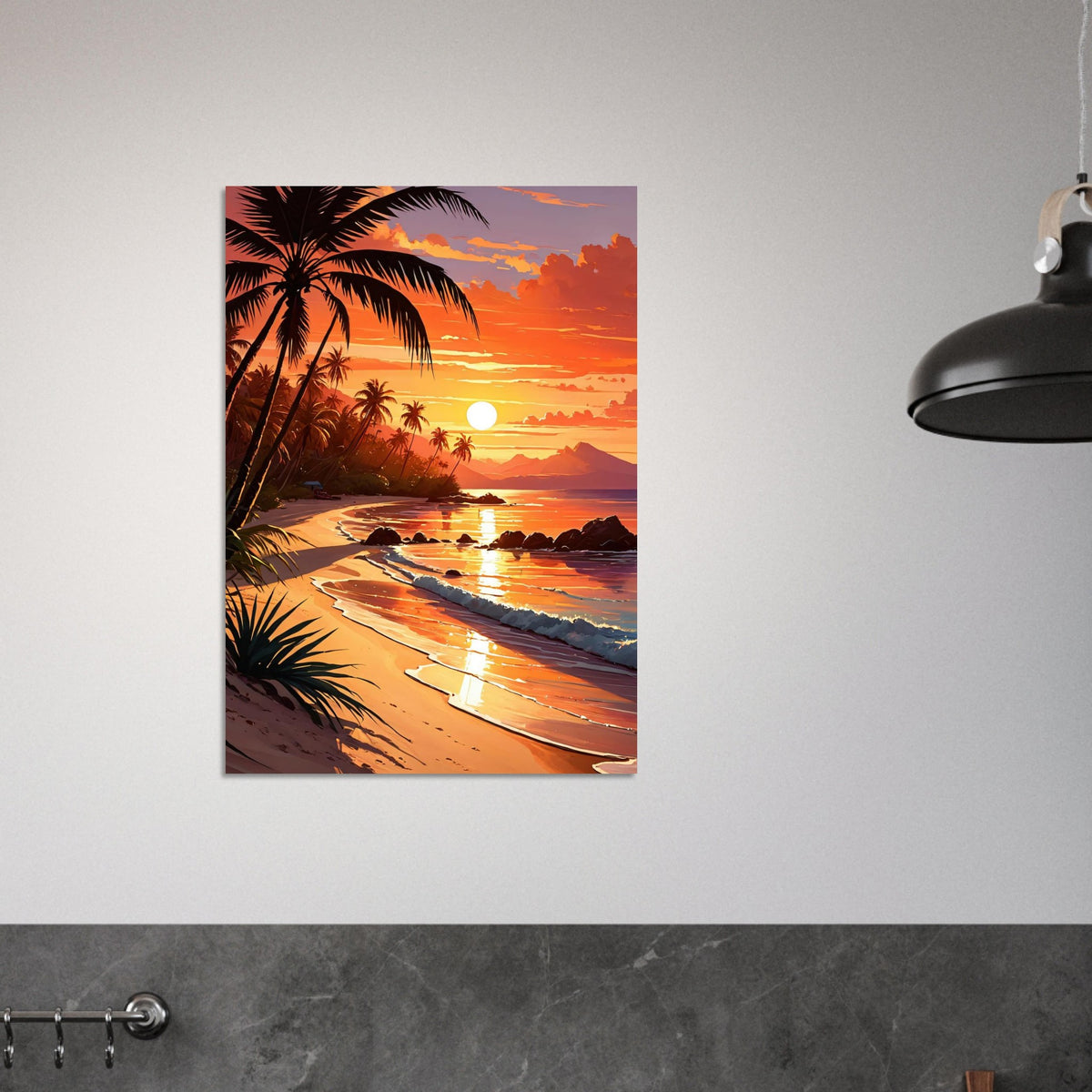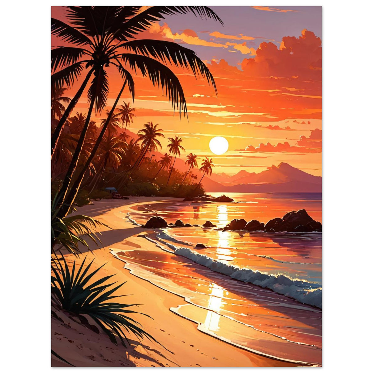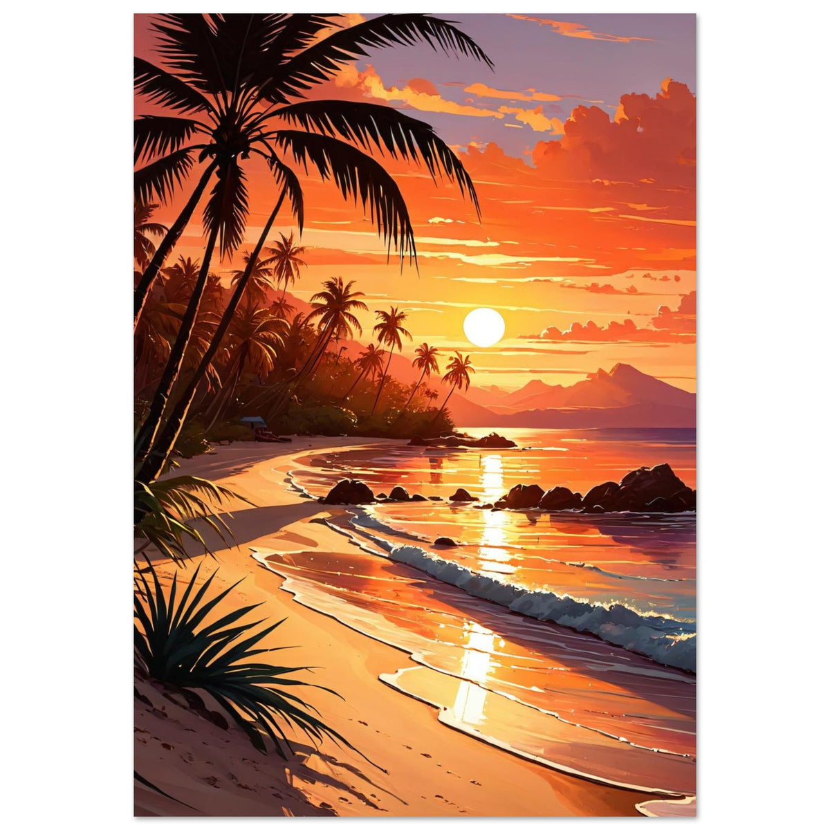 Shores of the Ember Sky captures the tranquil majesty of a tropical sunset at its most cinematic—where light, land, and sea align in a moment meant to be savored.