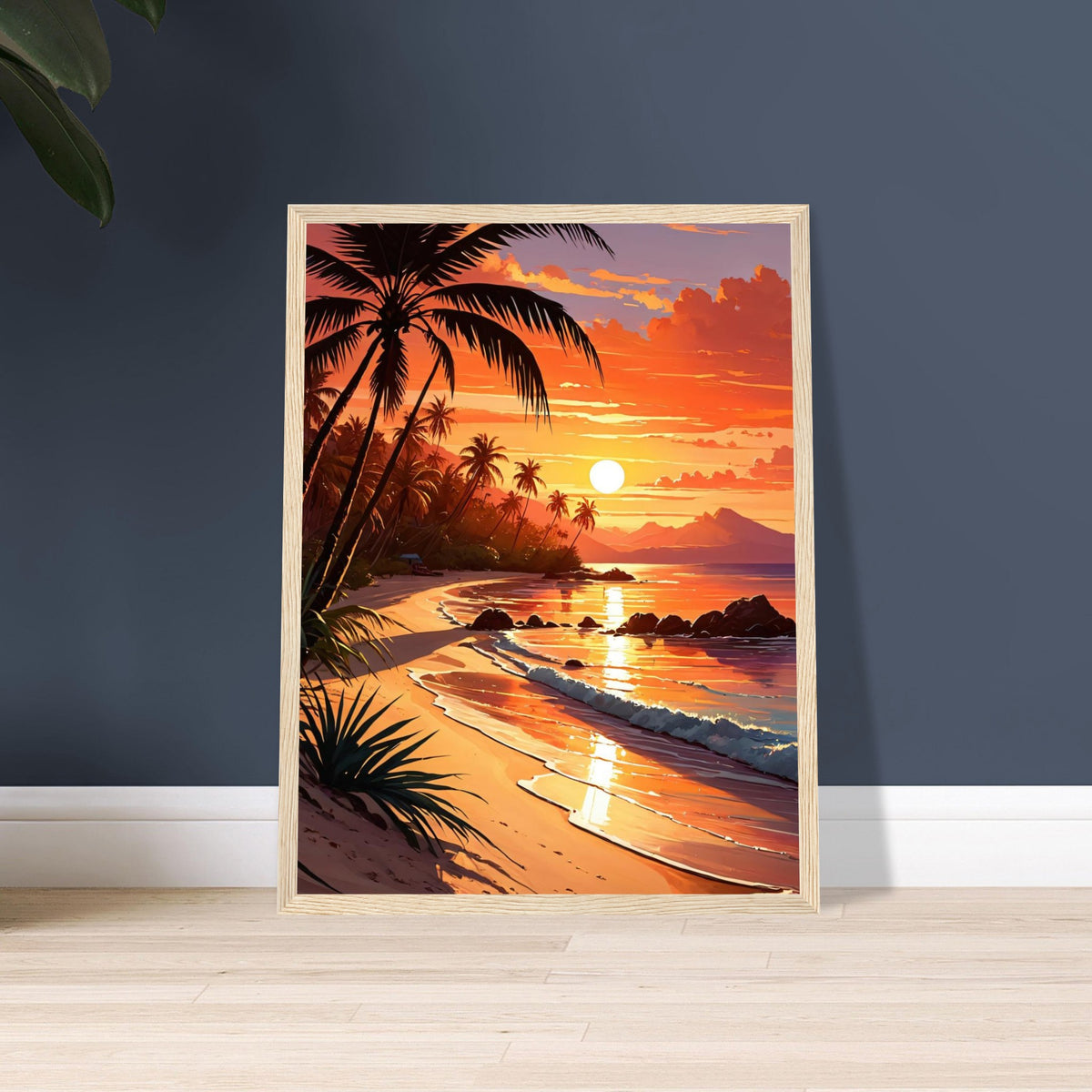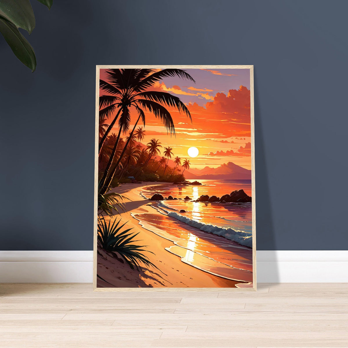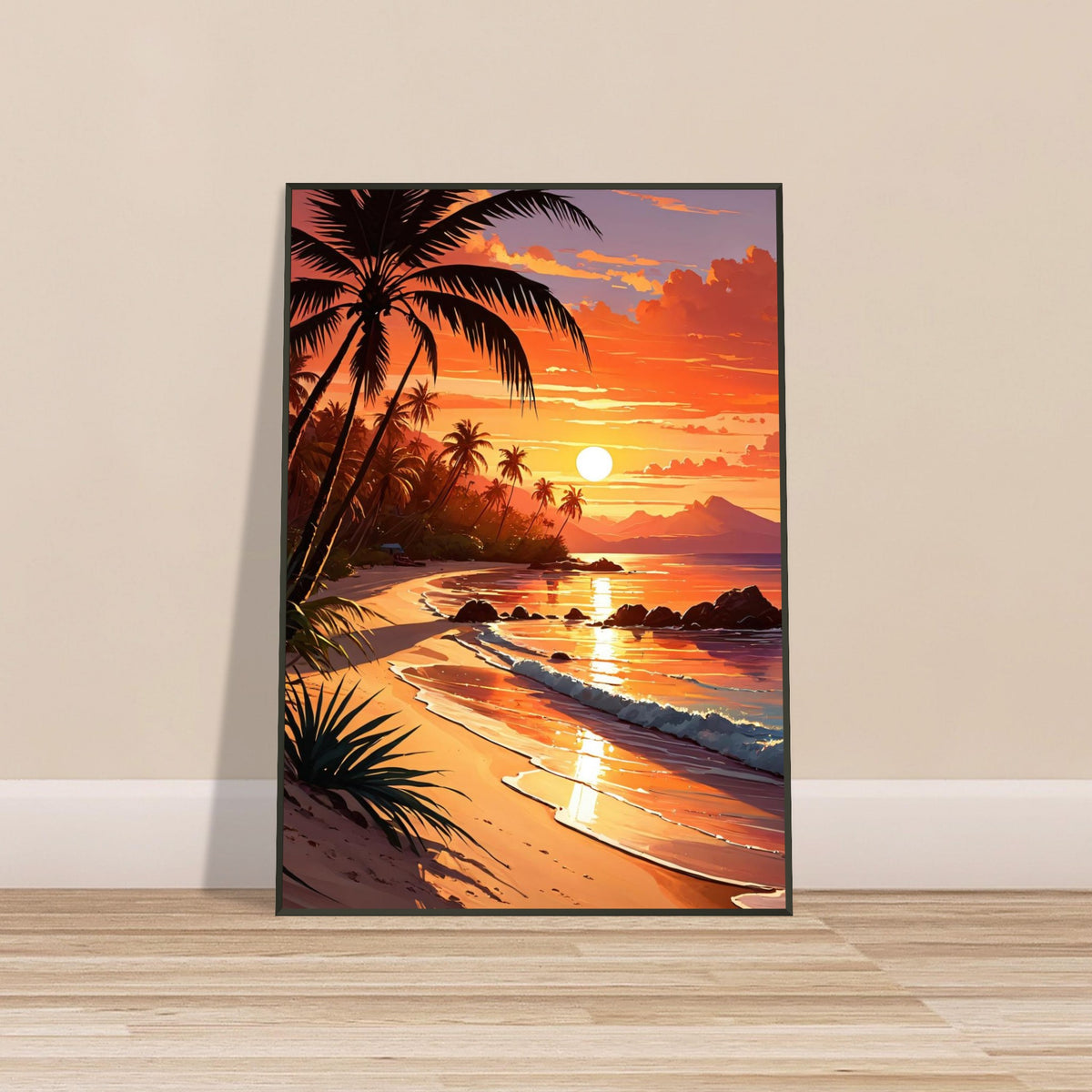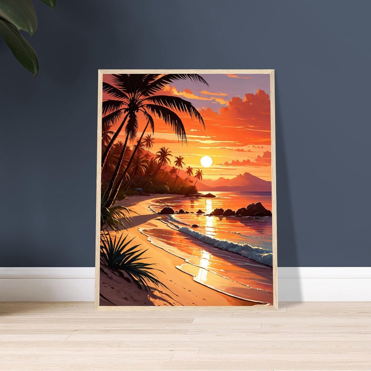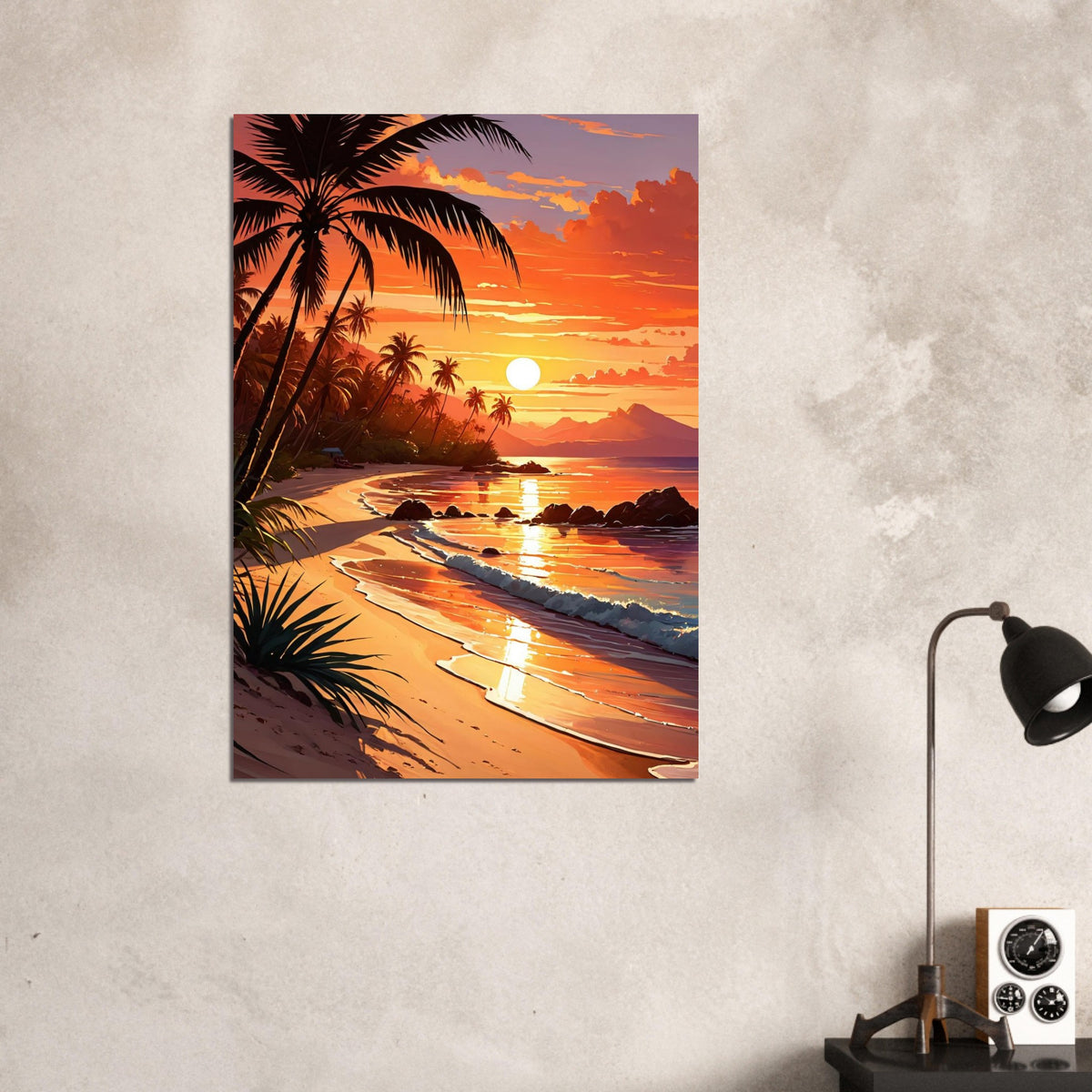 Shores of the Ember Sky captures the tranquil majesty of a tropical sunset at its most cinematic—where light, land, and sea align in a moment meant to be savored.