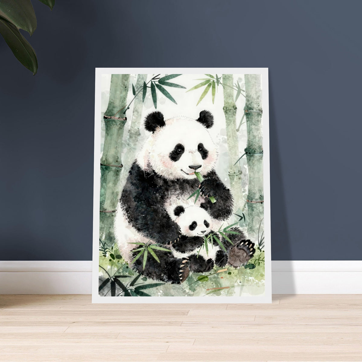 An mother panda rests beside its cub, surrounded by bamboo that feels less like shelter and more like home. Nothing here is posed. Nothing asks for attention. The connection is simple, familiar, and unforced.