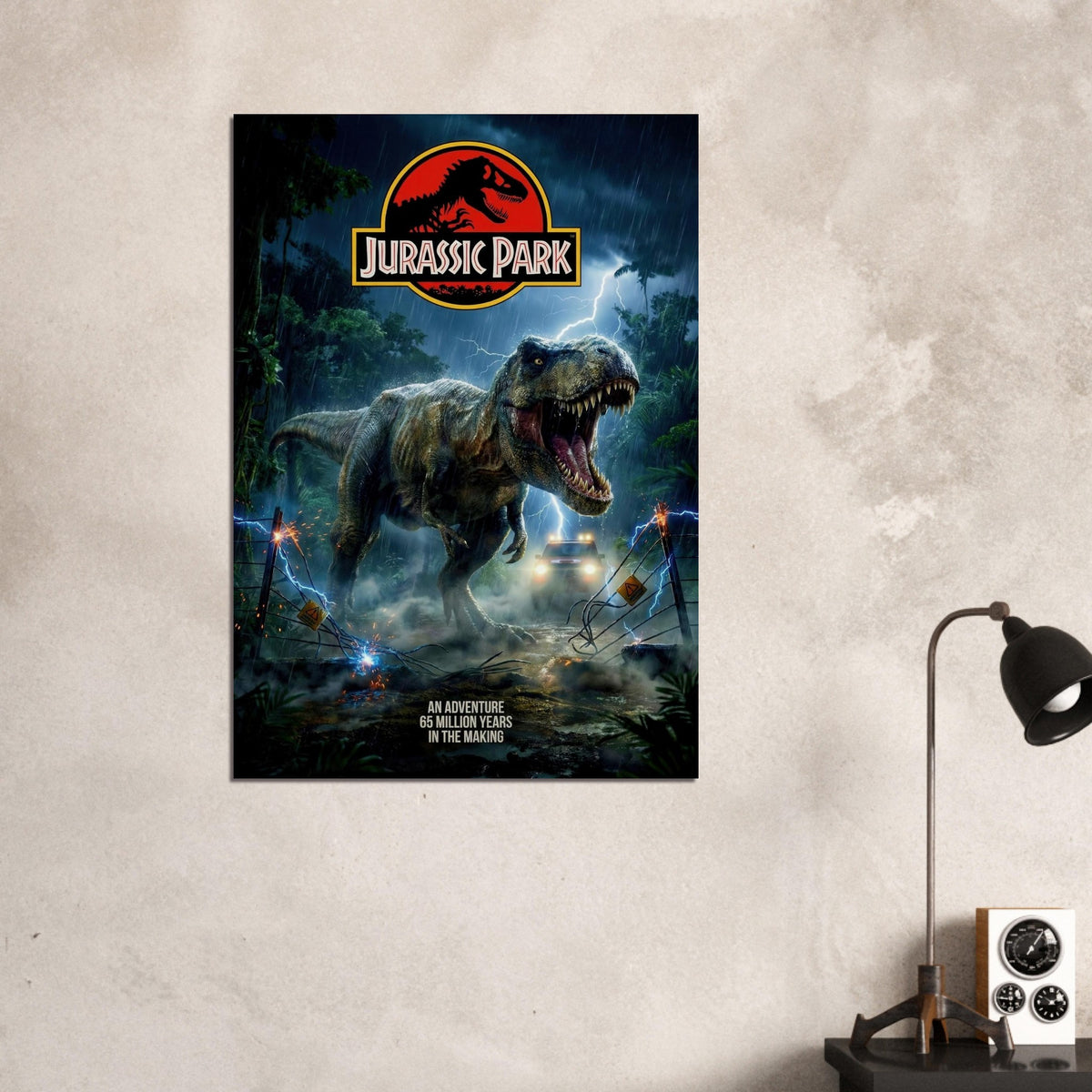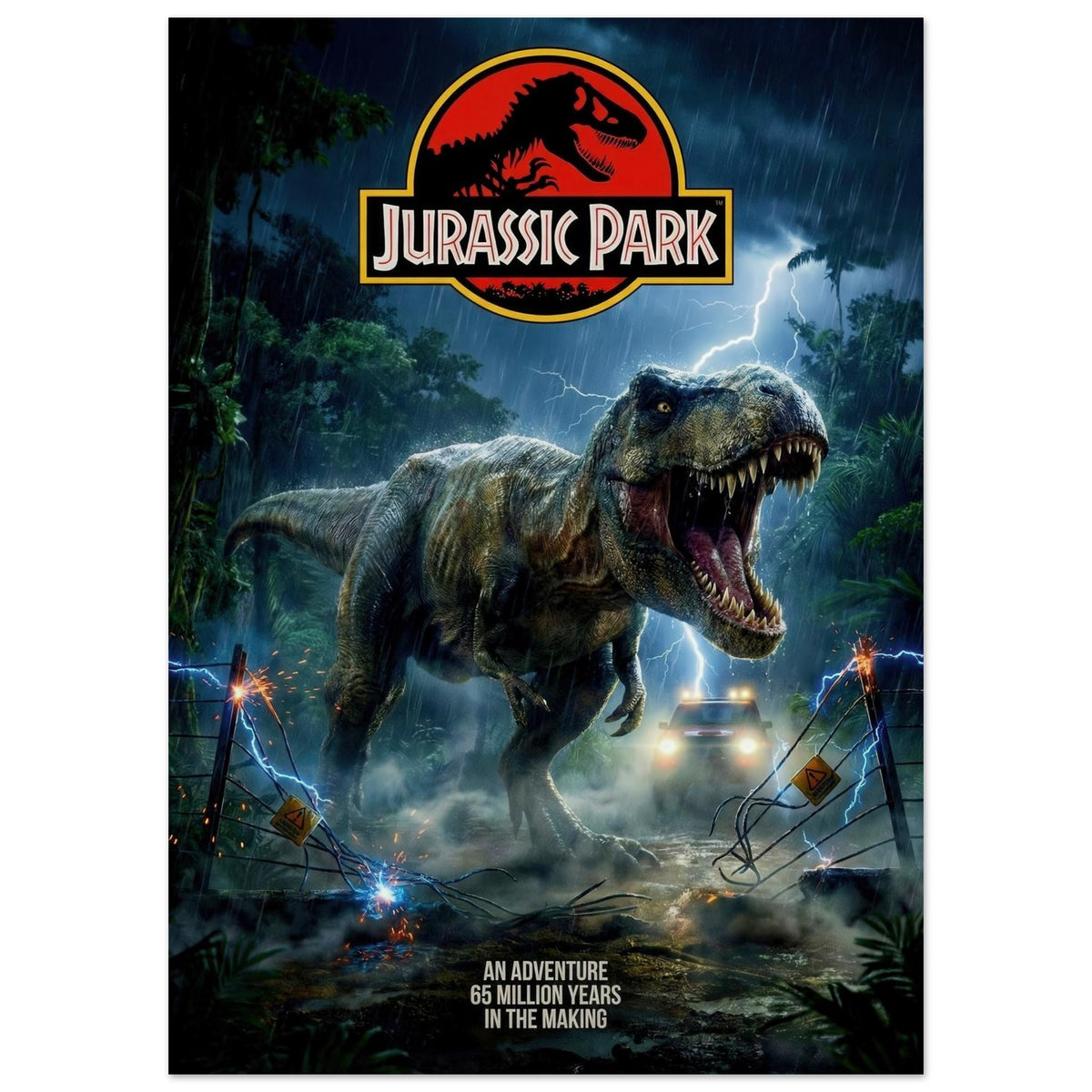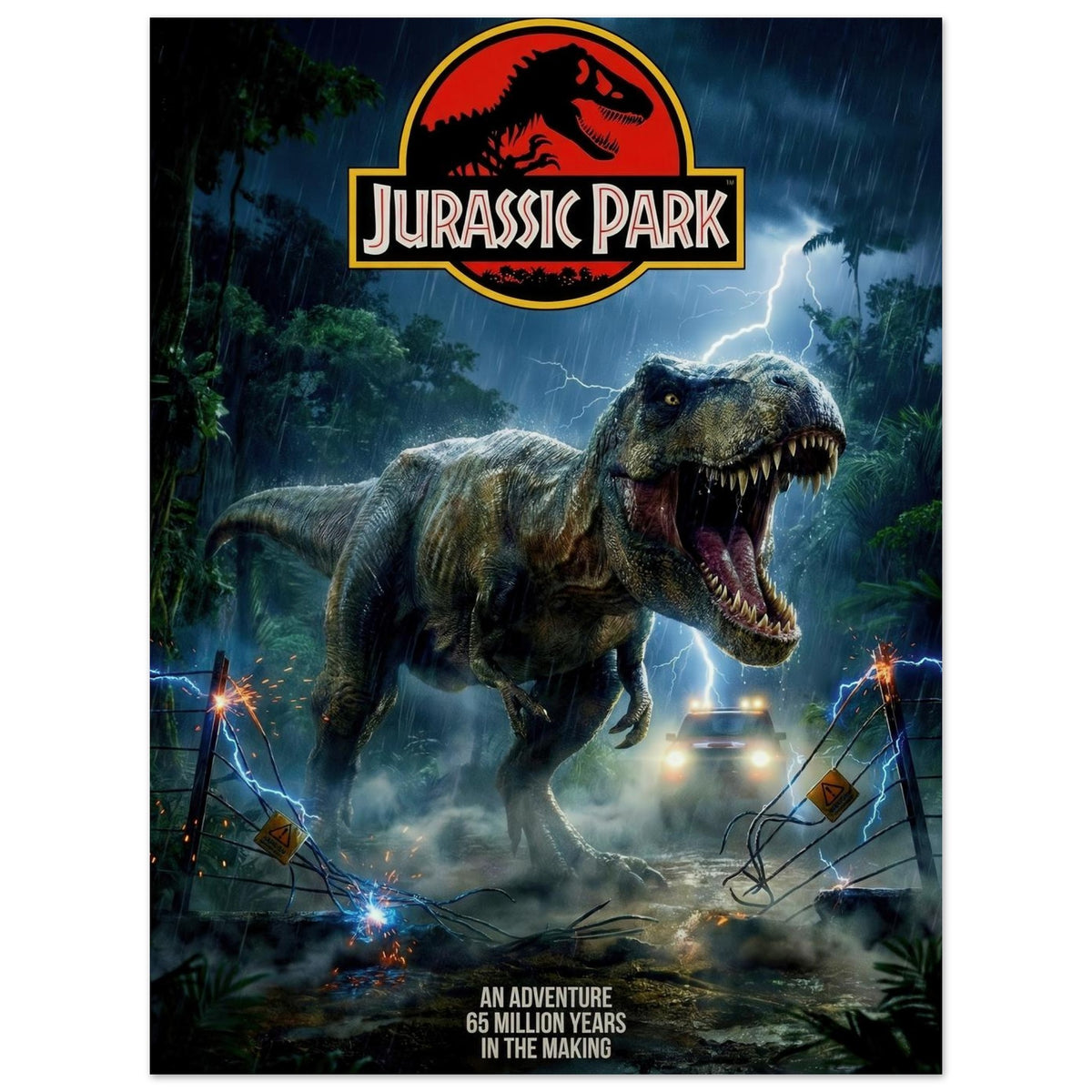 The King Returns captures the T. rex in all its impossible fury — rain hammering down, lightning tearing across the sky, and the jungle trembling beneath its roar. This is the moment the island drops its illusion of control and the ancient world rises to reclaim its throne. Water ripples, metal groans, and every instinct reminds you just how small humans are in the shadow of a creature 65 million years in the making.