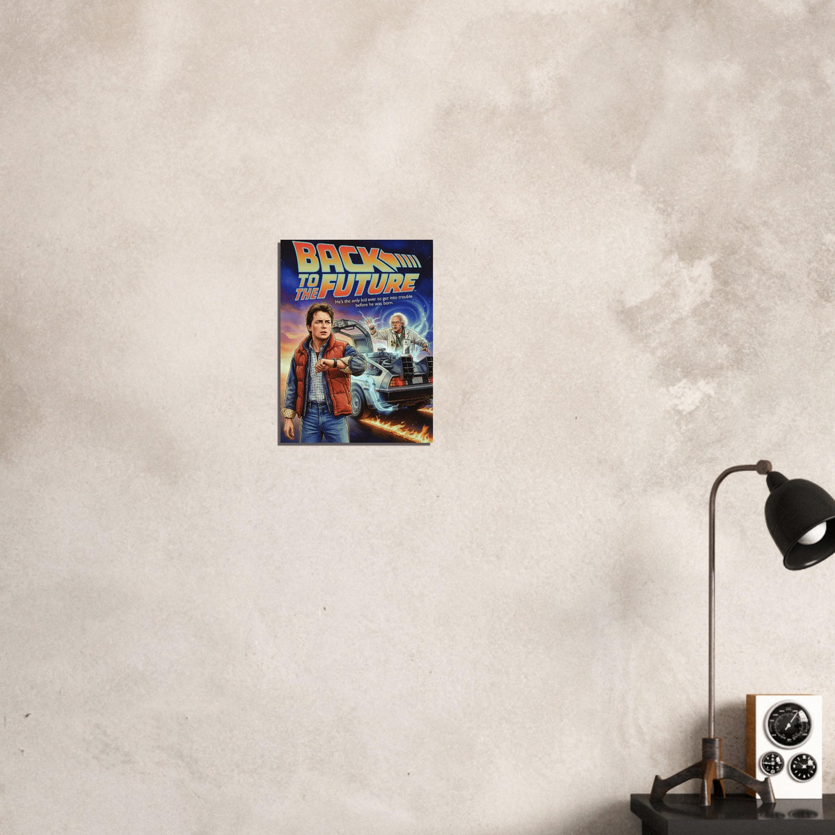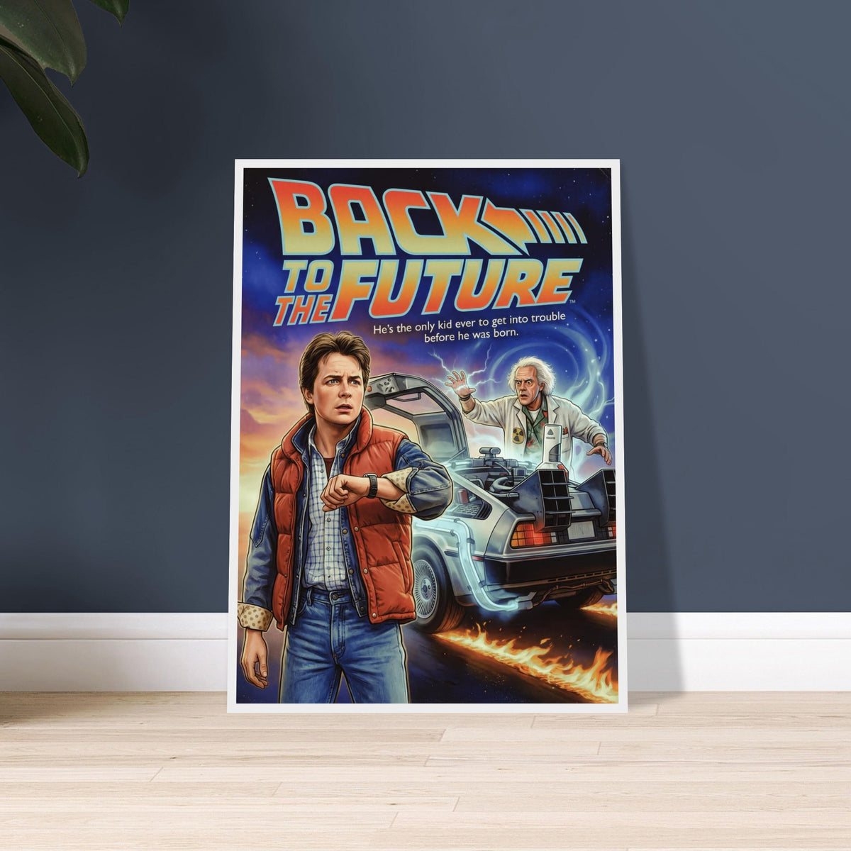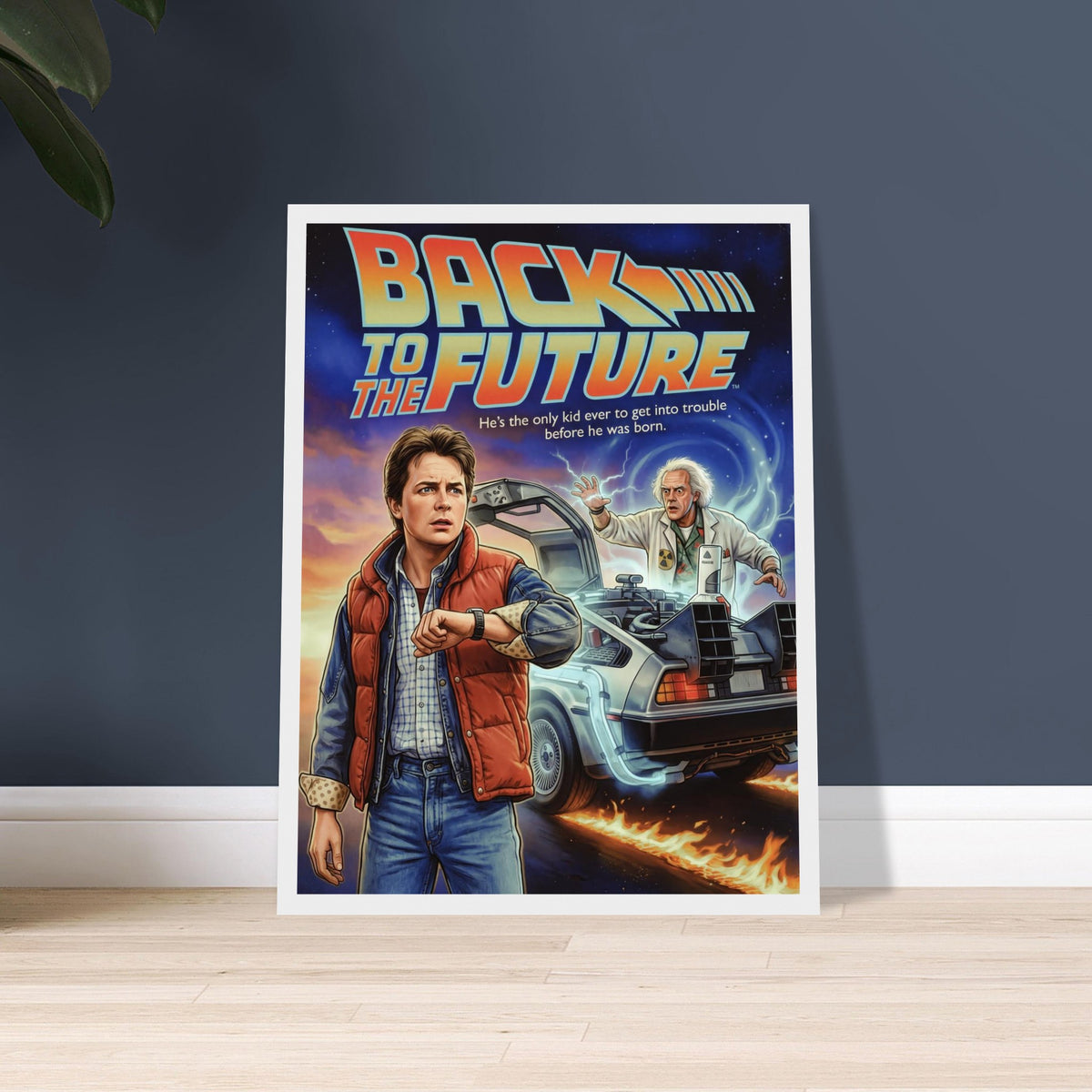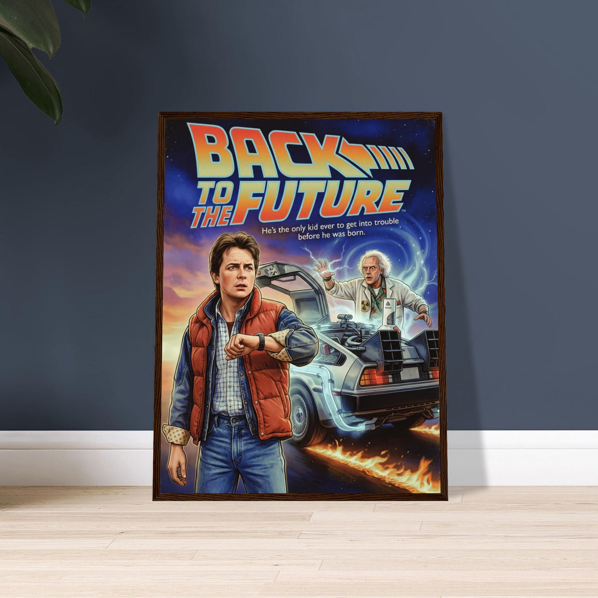 Beside him, Doc gestures with urgent certainty, alive with the reckless brilliance of a man who built the impossible and expects the universe to keep up. Between them rests the DeLorean, no longer just a machine, but a contradiction on wheels — proof that cause can arrive before consequence.